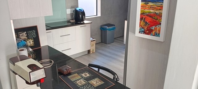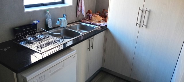 Die kombuis is goed ingerig met ‘n deur na die binnehof waar die wasgoed hang.