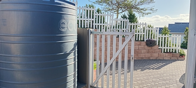 Met ‘n 5000 liter watertenk, 8 solarpanele met ‘n 5kw inverter en ‘n 6kw battery, is die munisipale rekening ook onder beheer.